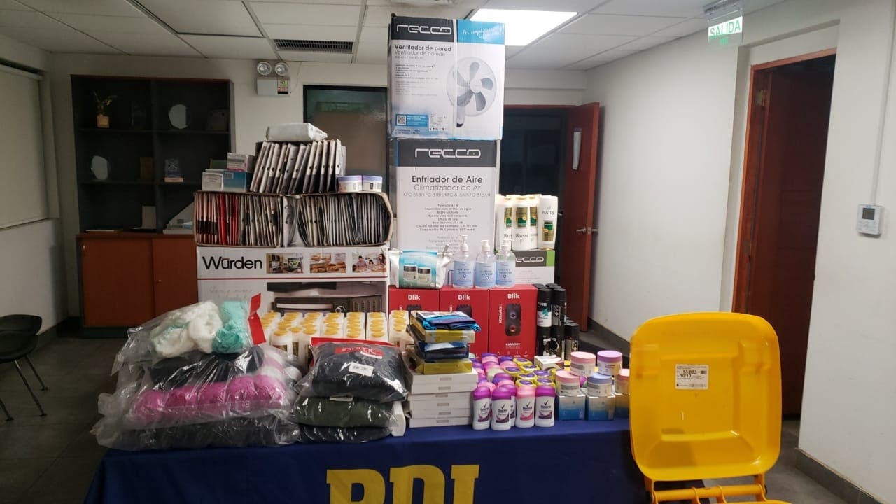 Una pareja, que fue detenida y será formalizada por el delito de receptación, tenía en su poder una serie de artículos que fueron robados el pasado lunes avaluadas en $1.100.00.